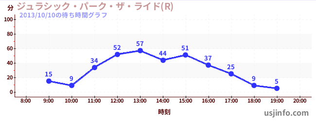 • ジュラシック・パーク・ザ・ライド(R)$B$N(B2013年10月10日の待ち時間