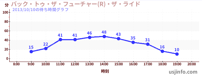 • バック・トゥ・ザ・フューチャー(R)・ザ・ライド$B$N(B2013年10月10日の待ち時間