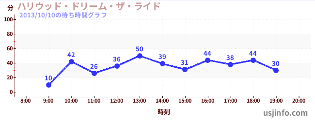 • ハリウッド・ドリーム・ザ・ライド$B$N(B2013年10月10日の待ち時間