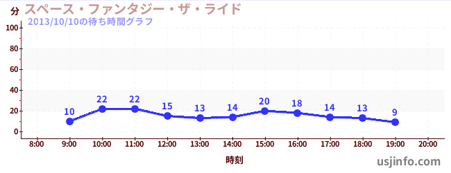• スペース・ファンタジー・ザ・ライド$B$N(B2013年10月10日の待ち時間