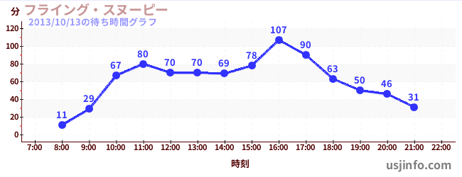 • フライング・スヌーピー$B$N(B2013年10月13日の待ち時間