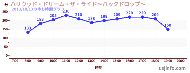 • ハリウッド・ドリーム・ザ・ライド〜バックドロップ〜$B$N(B2013年10月13日の待ち時間