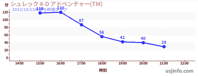 • シュレック 4-D アドベンチャー(TM)$B$N(B2013年10月13日の待ち時間