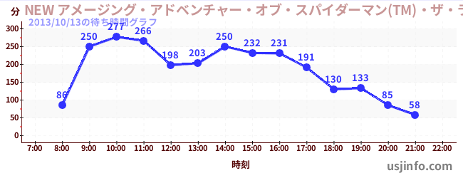 • NEW アメージング・アドベンチャー・オブ・スパイダーマン(TM)・ザ・ライド 4K3D$B$N(B2013年10月13日の待ち時間