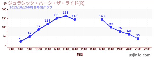 • ジュラシック・パーク・ザ・ライド(R)$B$N(B2013年10月13日の待ち時間