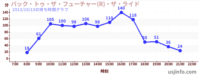 • バック・トゥ・ザ・フューチャー(R)・ザ・ライド$B$N(B2013年10月13日の待ち時間