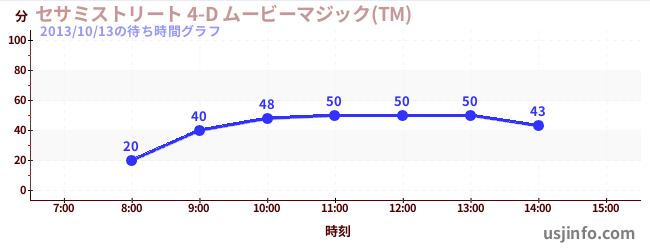• セサミストリート 4-D ムービーマジック(TM)$B$N(B2013年10月13日の待ち時間