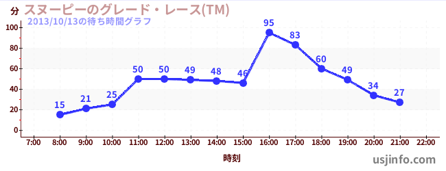 • スヌーピーのグレード・レース(TM)$B$N(B2013年10月13日の待ち時間