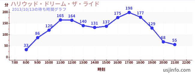 • ハリウッド・ドリーム・ザ・ライド$B$N(B2013年10月13日の待ち時間