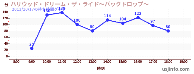 • ハリウッド・ドリーム・ザ・ライド〜バックドロップ〜$B$N(B2013年10月17日の待ち時間