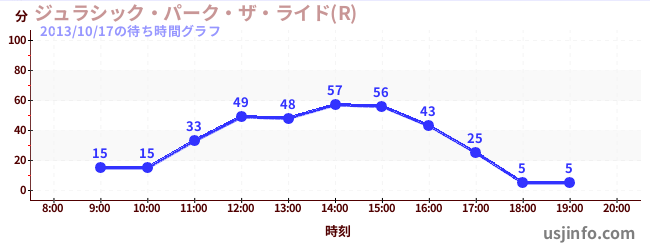 • ジュラシック・パーク・ザ・ライド(R)$B$N(B2013年10月17日の待ち時間