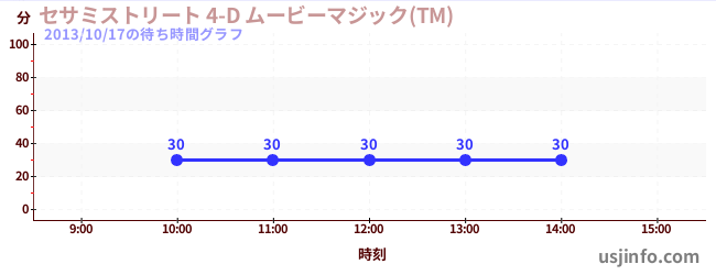 • セサミストリート 4-D ムービーマジック(TM)$B$N(B2013年10月17日の待ち時間