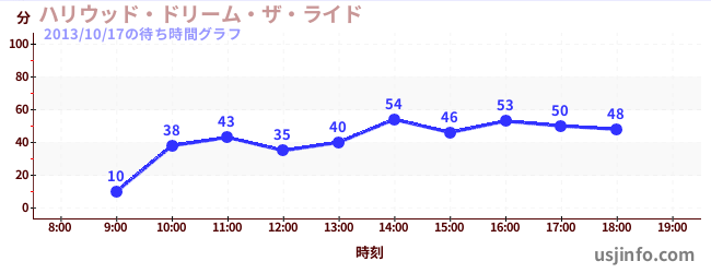 • ハリウッド・ドリーム・ザ・ライド$B$N(B2013年10月17日の待ち時間