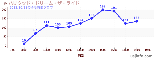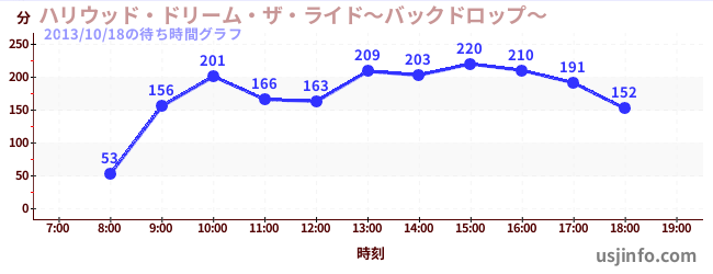 • ハリウッド・ドリーム・ザ・ライド〜バックドロップ〜$B$N(B2013年10月18日の待ち時間