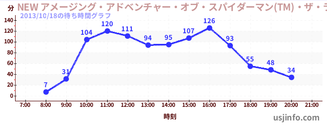 • NEW アメージング・アドベンチャー・オブ・スパイダーマン(TM)・ザ・ライド 4K3D$B$N(B2013年10月18日の待ち時間
