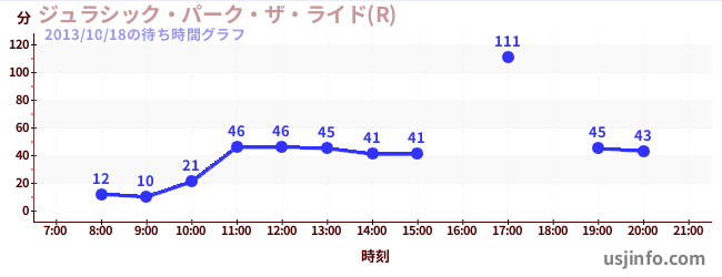 • ジュラシック・パーク・ザ・ライド(R)$B$N(B2013年10月18日の待ち時間