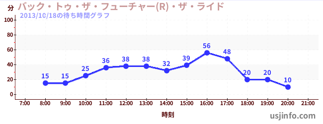 • バック・トゥ・ザ・フューチャー(R)・ザ・ライド$B$N(B2013年10月18日の待ち時間