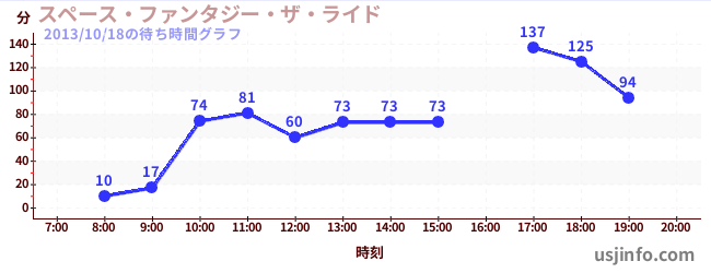 • スペース・ファンタジー・ザ・ライド$B$N(B2013年10月18日の待ち時間