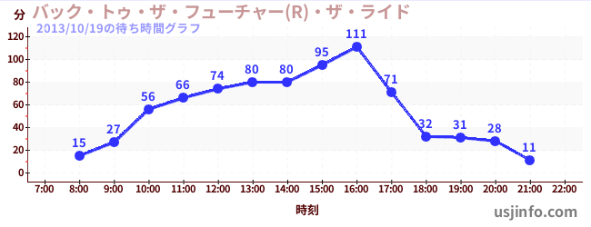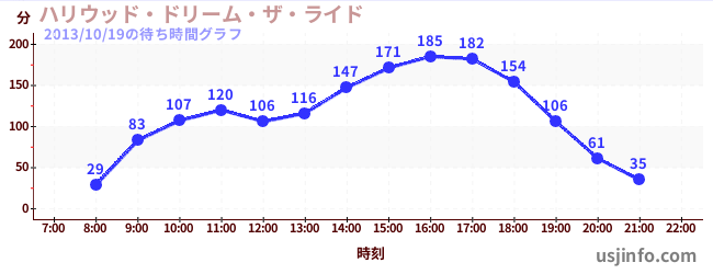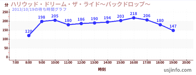 • ハリウッド・ドリーム・ザ・ライド〜バックドロップ〜$B$N(B2013年10月19日の待ち時間