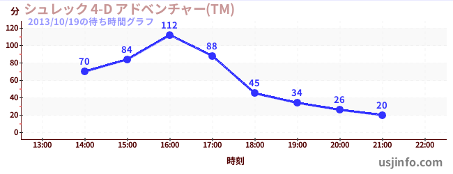 • シュレック 4-D アドベンチャー(TM)$B$N(B2013年10月19日の待ち時間