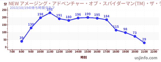 • NEW アメージング・アドベンチャー・オブ・スパイダーマン(TM)・ザ・ライド 4K3D$B$N(B2013年10月19日の待ち時間