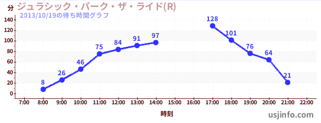 • ジュラシック・パーク・ザ・ライド(R)$B$N(B2013年10月19日の待ち時間