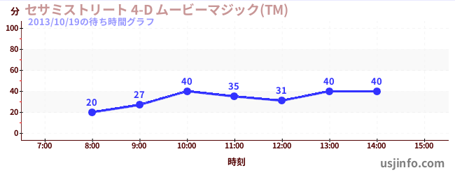 • セサミストリート 4-D ムービーマジック(TM)$B$N(B2013年10月19日の待ち時間