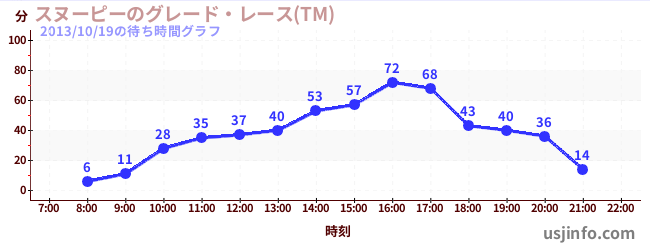 • スヌーピーのグレード・レース(TM)$B$N(B2013年10月19日の待ち時間