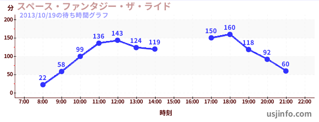 • スペース・ファンタジー・ザ・ライド$B$N(B2013年10月19日の待ち時間