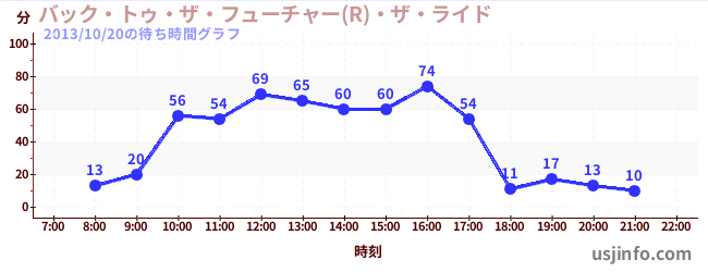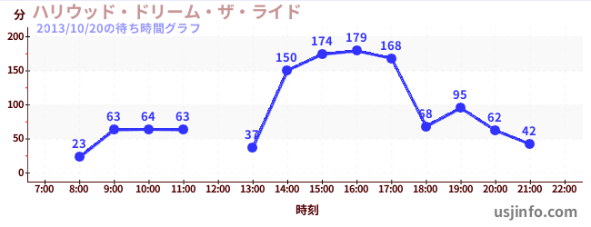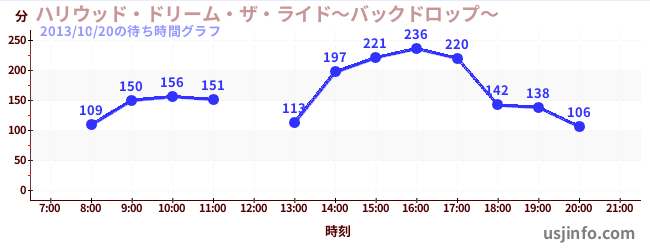 • ハリウッド・ドリーム・ザ・ライド〜バックドロップ〜$B$N(B2013年10月20日の待ち時間