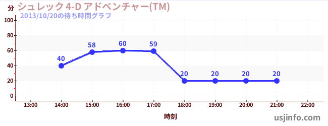 • シュレック 4-D アドベンチャー(TM)$B$N(B2013年10月20日の待ち時間