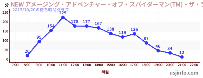 • NEW アメージング・アドベンチャー・オブ・スパイダーマン(TM)・ザ・ライド 4K3D$B$N(B2013年10月20日の待ち時間