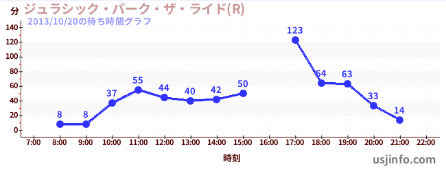• ジュラシック・パーク・ザ・ライド(R)$B$N(B2013年10月20日の待ち時間