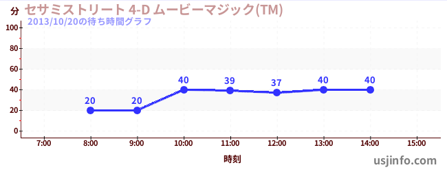 • セサミストリート 4-D ムービーマジック(TM)$B$N(B2013年10月20日の待ち時間