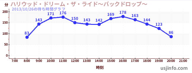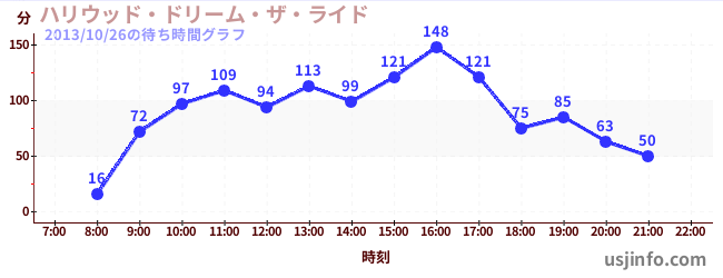 • ハリウッド・ドリーム・ザ・ライド〜バックドロップ〜$B$N(B2013年10月26日の待ち時間