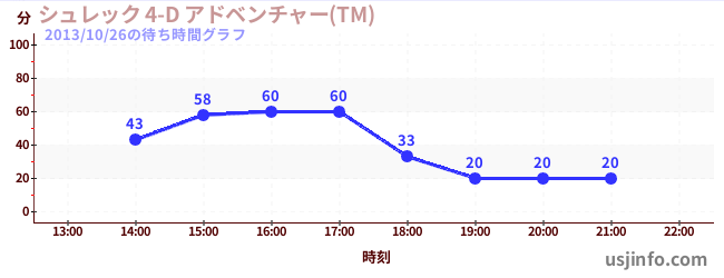 • シュレック 4-D アドベンチャー(TM)$B$N(B2013年10月26日の待ち時間