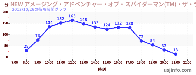 • NEW アメージング・アドベンチャー・オブ・スパイダーマン(TM)・ザ・ライド 4K3D$B$N(B2013年10月26日の待ち時間