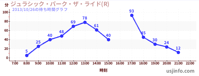 • ジュラシック・パーク・ザ・ライド(R)$B$N(B2013年10月26日の待ち時間
