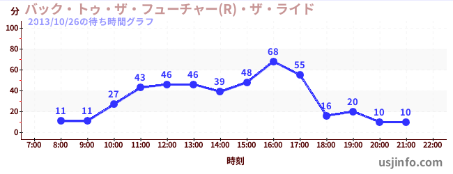 • バック・トゥ・ザ・フューチャー(R)・ザ・ライド$B$N(B2013年10月26日の待ち時間