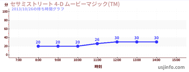 • セサミストリート 4-D ムービーマジック(TM)$B$N(B2013年10月26日の待ち時間