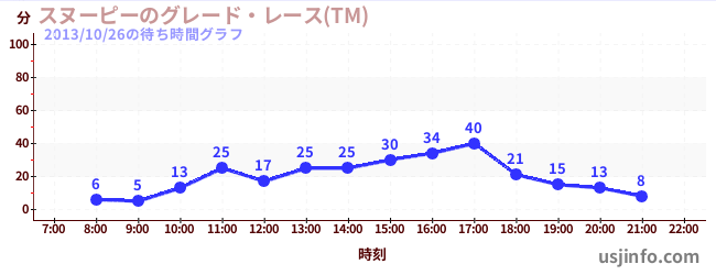 • スヌーピーのグレード・レース(TM)$B$N(B2013年10月26日の待ち時間