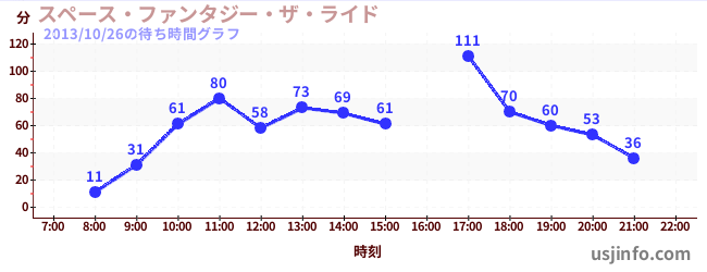• スペース・ファンタジー・ザ・ライド$B$N(B2013年10月26日の待ち時間