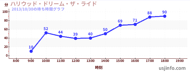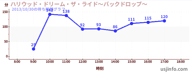 • ハリウッド・ドリーム・ザ・ライド〜バックドロップ〜$B$N(B2013年10月30日の待ち時間