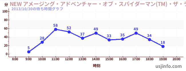 • NEW アメージング・アドベンチャー・オブ・スパイダーマン(TM)・ザ・ライド 4K3D$B$N(B2013年10月30日の待ち時間