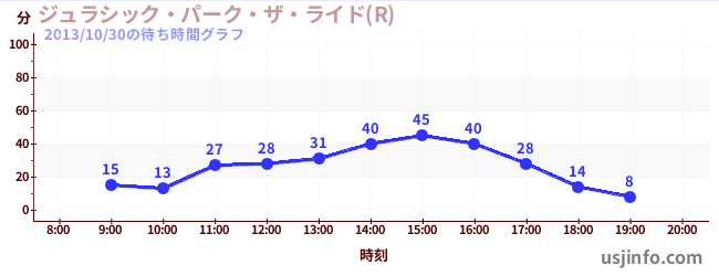 • ジュラシック・パーク・ザ・ライド(R)$B$N(B2013年10月30日の待ち時間