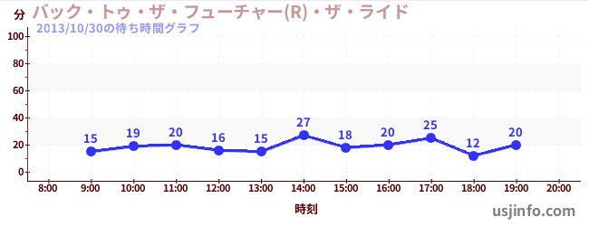 • バック・トゥ・ザ・フューチャー(R)・ザ・ライド$B$N(B2013年10月30日の待ち時間