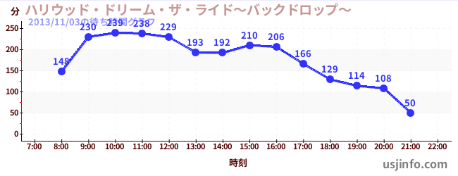 • ハリウッド・ドリーム・ザ・ライド〜バックドロップ〜$B$N(B2013年11月03日の待ち時間