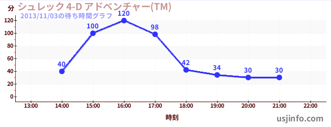 • シュレック 4-D アドベンチャー(TM)$B$N(B2013年11月03日の待ち時間