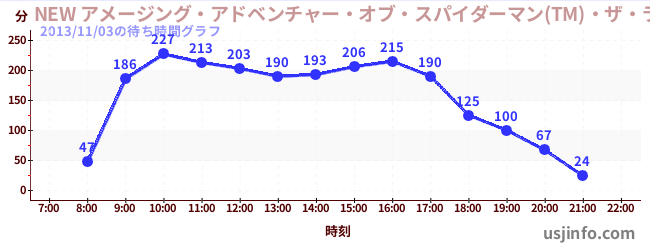 • NEW アメージング・アドベンチャー・オブ・スパイダーマン(TM)・ザ・ライド 4K3D$B$N(B2013年11月03日の待ち時間