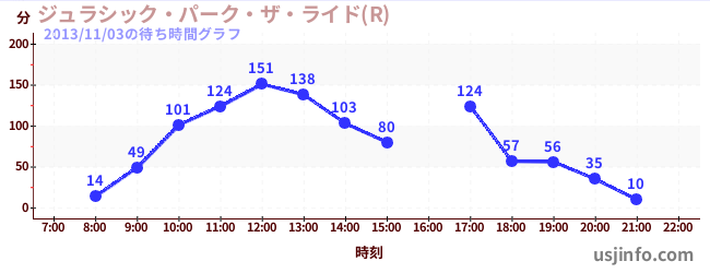 • ジュラシック・パーク・ザ・ライド(R)$B$N(B2013年11月03日の待ち時間